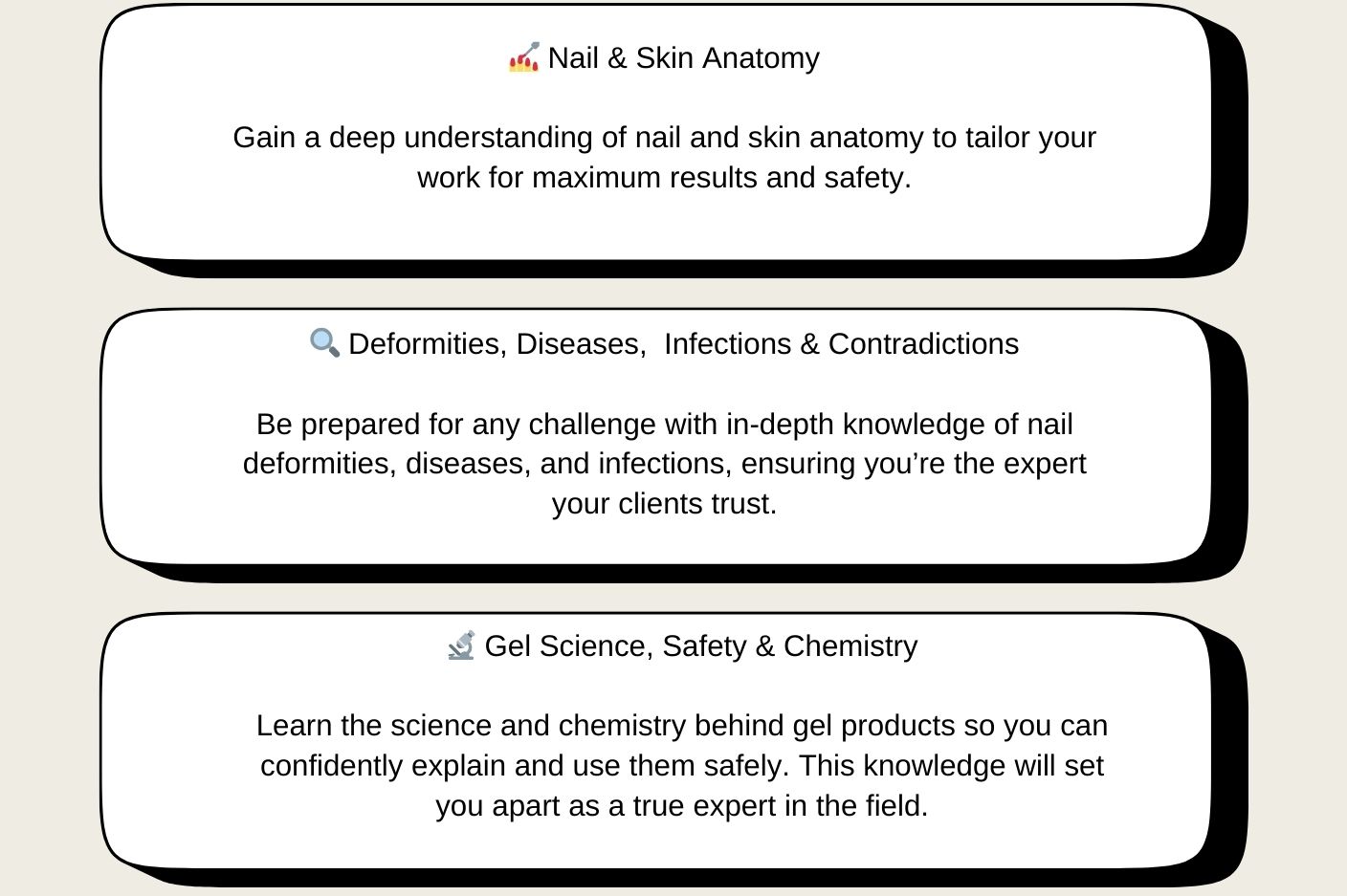 Furthermore you will learn how to troubleshoot complications that may arise with different client case studies and how to identify an allergy, disease , deformity &Â infection to ensure your clients nails are never compromised.