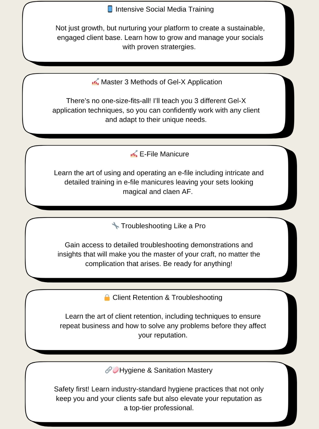 and that my Queens is why I created this course . Not only do you have all the theory and practical demonstrations online about how to apply gel extensions for a FLAWLESS application but you have a guide to walk you though your journey to becoming a leading industry professional and ENTREPRENEUR.